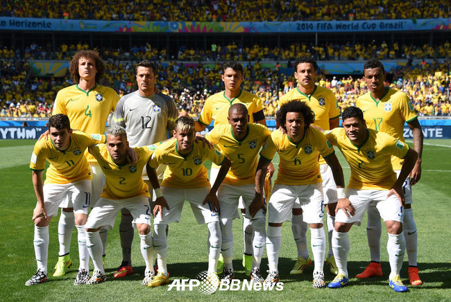 [OSEN=사진팀]29일(한국시각) 브라질 벨루오리존치에 위치한 에스타디오 미네이랑에서 열린 2014 브라질월드컵 16강전 첫 경기 브라질과 칠레의 경기전 브라질 대표팀이 포즈를 취하고 있다