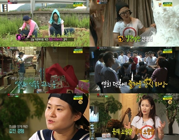 이날 멤버들은 아르바이트를 통해 일의 소중함과 보람을 느낄 수 있는 시간을 가졌다. 김신영과 박은영은 농사일 아르바이트에 나섰다. 몸은 고되고 힘들었지만 마음만은 그 어느 때보다 뿌듯했다. 김신영은 "진정한 꿀 아르바이트였다. 일은 정말 그 어떤 아르바이트보다 고됐지만 성취감을 꿀이었다"고 말했다. 박은영 역시 "마음가짐이 중요하다. 즐거운 마음으로 재밌게 일하니까 힘들어도 힘들게 느껴지지 않았다"고 털어놨다.