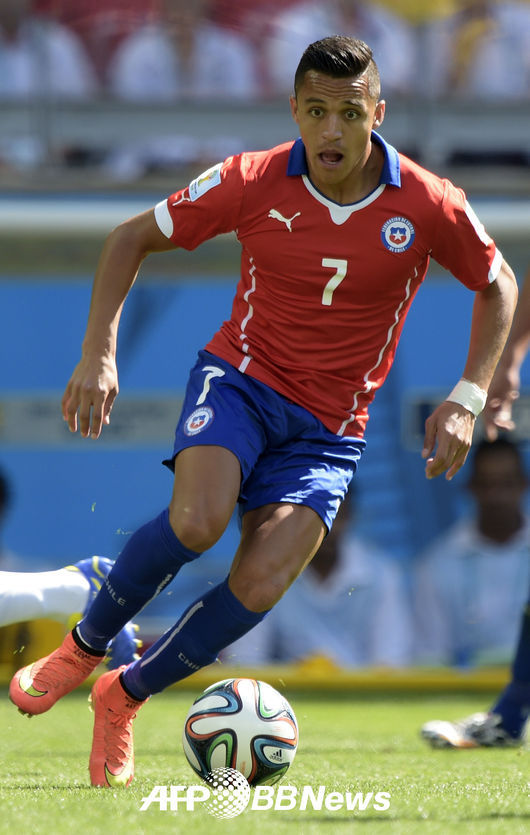 [OSEN=사진팀]29일(한국시각) 브라질 벨루오리존치에 위치한 에스타디오 미네이랑에서 열린 2014 브라질월드컵 16강전 첫 경기 브라질과 칠레의 경기, 전반 칠레 산체스가 드리블을 하고 있다.