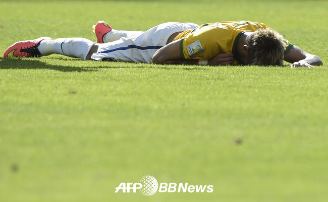 연장 브라질 네이마르가 엎드려 있다. /photo@osen.co.kr