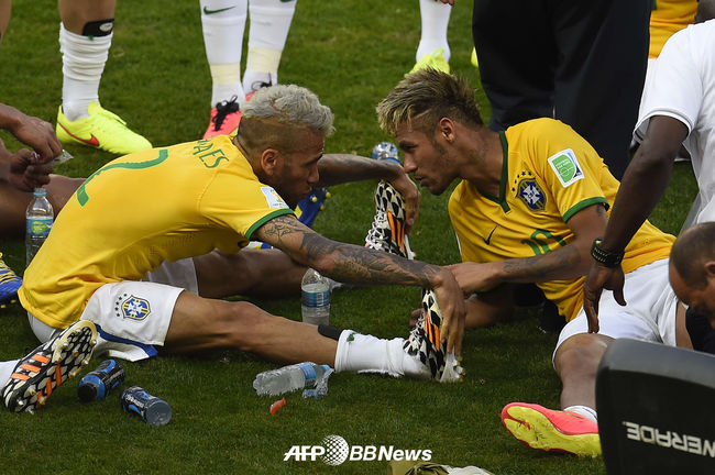 연장에 앞서 브라질 알베스와 네이마르가 이야기를 나누고 있다. /photo@osen.co.kr