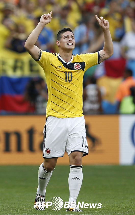 팽팽하던 균형은 전반 28분 무너졌다. 아크 정면에서 가슴으로 공을 잡은 로드리게스는 공이 떨어지기 전에 그대로 왼발 발리슛을 때렸다. 하늘로 치솟았다가 뚝 떨어진 공은 그대로 골키퍼 손을 벗어나 골망을 흔들었다. 콜롬비아는 1-0으로 앞서나갔다.