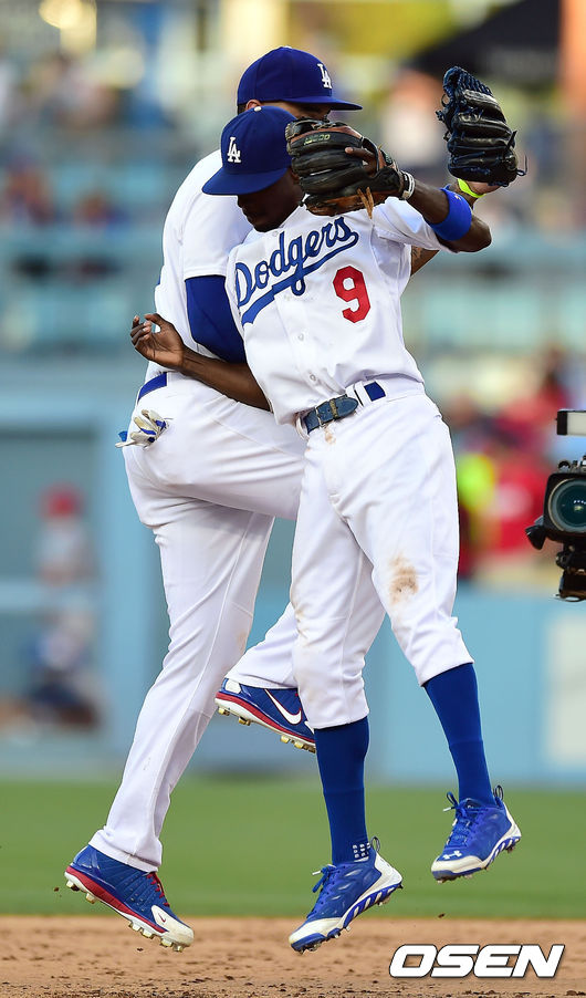 다저스 켐프와 고든이 세레머니를 하고 있다./youngrae@osen.co.kr