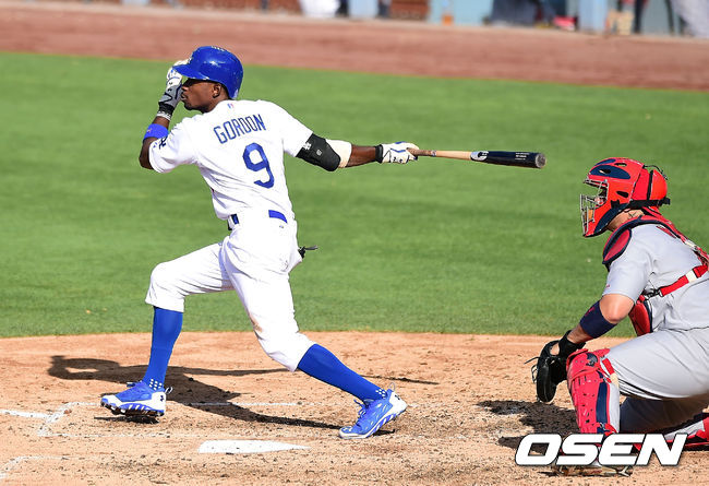 3회말 1사 1루 다저스 디 고든이 2루타를 때리고 있다./youngrae@osen.co.kr