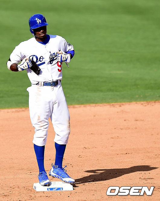 3회말 1사 1루 다저스 디 고든이 2루타를 때린 뒤 기뻐하고 있다./youngrae@osen.co.kr