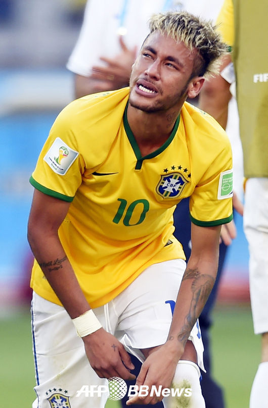 극적인 승부차기 성공으로 브라질을 8강으로 이끈 네이마르(22, 바르셀로나)가 끝내 눈물을 보였다.