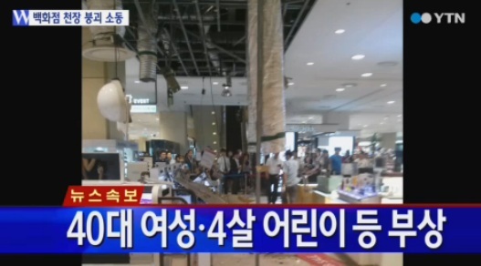 현대백화점 천호점, 1층 천장 붕괴…2명 경상·더 늘어날 듯