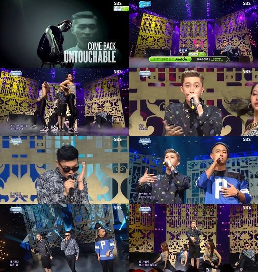 언터쳐블은 29일 오후 방송된 SBS '인기가요'에서 신곡 '테이크 아웃(TAKE OUT)'을 열창하며 뜨거운 컴백무대를 선사했다.