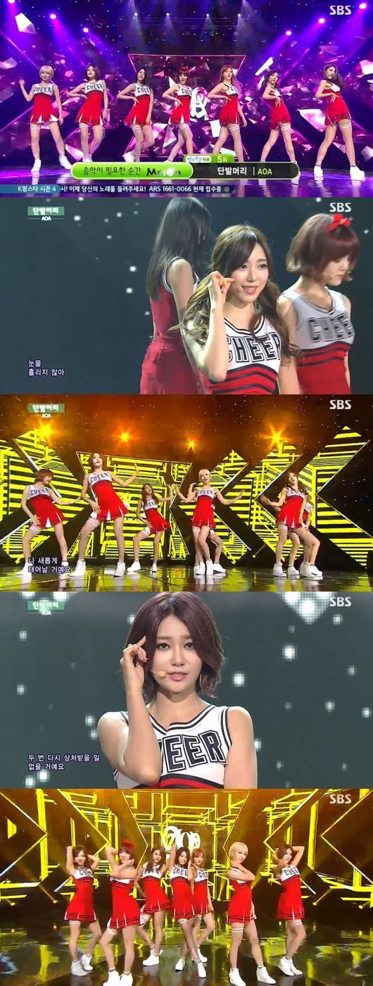 AOA는 9일 오후 방송된 SBS '인기가요'에서 자신들의 곡 '단발머리'로 무대에 올라, 발랄함과 성숙한 매력을 동시에 충족시키는 무대를 선보였다.