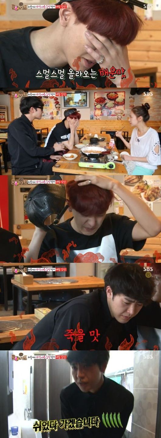 찬열, 박민우는 29일 오후 방송된 SBS 예능프로그램 '일요일이 좋다-룸메이트'에서 홍수현과 함께 매운 닭발을 먹기 위해 나섰다 큰 코를 다쳤다.