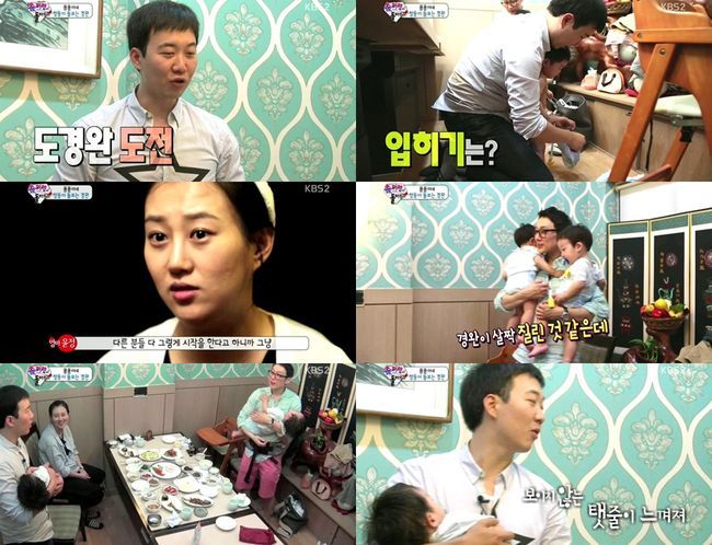 도경완은 서언이와 서준에게 눈높이를 맞추기 위해 테이블 밑에 들어가기도 하고, 과자를 건네기도 했지만 좀처럼 아이들의 마음을 사로잡는데 실패했다. 이어 직접 서준이의 기저귀를 교체하는 작업을 하며 진땀을 빼기도 했다.