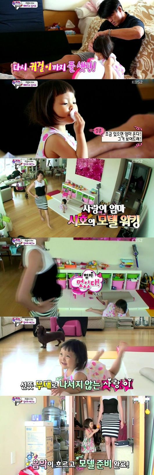 29일 오후 방송된 KBS 2TV '해피선데이-슈퍼맨이 돌아왔다'(이하 '슈퍼맨')에서는 메이크업, 액세서리 착용 후 패션쇼에 도전하는 추사랑의 모습이 그려졌다.