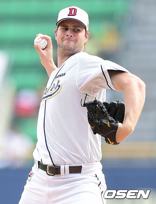 두산 베어스 우완 크리스 볼스테드(28)가 타선 지원을 받지 못하고 패전 위기에 처했다.