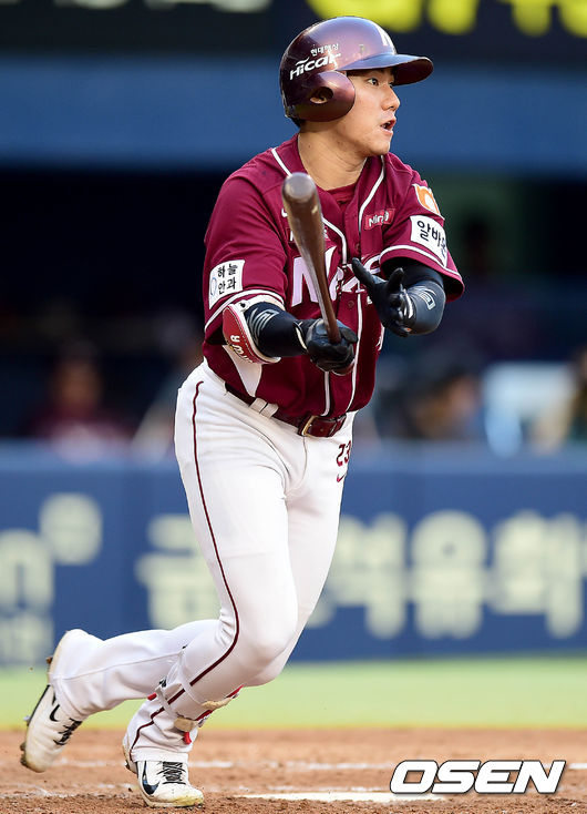 5회초 넥센 공격 1사 3루 상황 문우람이 적시 1타점 우익선상 2루타를 날리고 있다.
