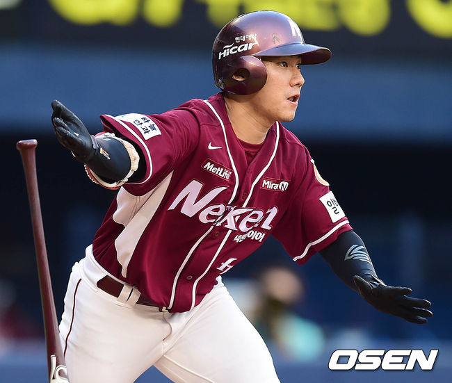 5회초 넥센 공격 1사 3루 상황 문우람이 적시 1타점 우익선상 2루타를 날리고 있다.