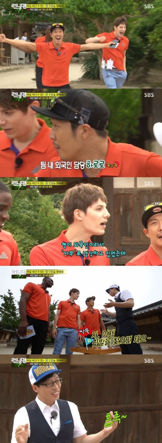 유재석은 29일 오후 방송된 SBS 예능프로그램 '일요일이 좋다-런닝맨'에서 게스트로 출연한 샘 오취리, 파비앙의 리액션에 "저렇게 좋다. 깜짝 놀라지 않냐"고 칭찬했다.