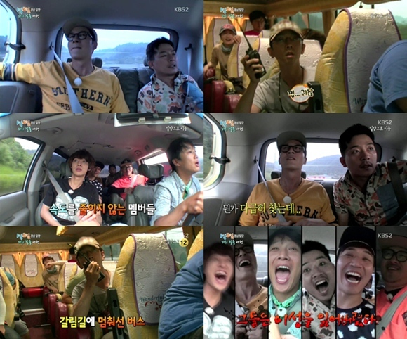 이날 멤버들은 에어컨이 작동하지 않고, 창문도 열리지 않는 차량을 타고 경남 밀양으로 더위탈출 여행을 떠났다. 멤버들은 에어컨이 작동되는 차량으로 교체하기 위해 제작진과 세 가지 미션을 진행했다.