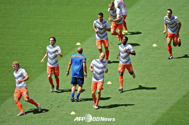 [OSEN=사진팀] 30일 오전(한국시간) 브라질 포스탈레자의 카스텔랑 주경기장에서 열린 '2014 브라질 월드컵' 16강전 네덜란드와 멕시코의 경기전 로번과 판페르시 등 네덜란드 선수들이 몸을 풀고 있다