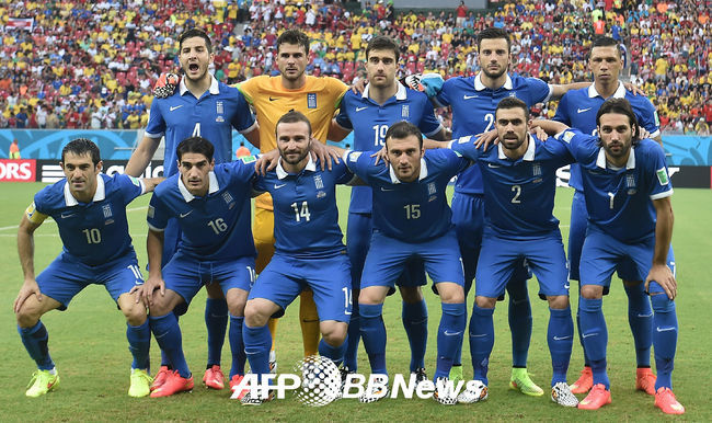 [OSEN=사진팀] 30일(한국시간) 브라질 헤시피의 아레나 페르남부쿠에서 2014 브라질월드컵 16강전 코스타리카와 그리스의 경기, 그리스 선수들이 포즈를 취하고 있다