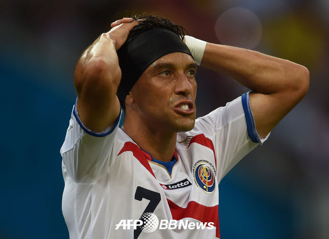 [OSEN=사진팀] 30일(한국시간) 브라질 헤시피의 아레나 페르남부쿠에서 2014 브라질월드컵 16강전 코스타리카와 그리스의 경기, 코스타리카 볼라뇨스가 아쉬워하고 있다.