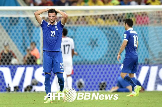 [OSEN=사진팀] 30일(한국시간) 브라질 헤시피의 아레나 페르남부쿠에서 2014 브라질월드컵 16강전 코스타리카와 그리스의 경기, 전반 사마리스가 중거리슛을 놓친후 아쉬워하고 있다.