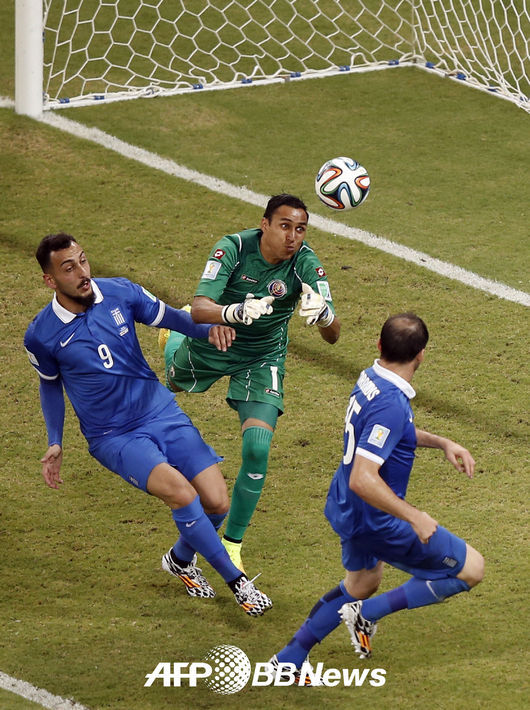 [OSEN=사진팀] 30일(한국시간) 브라질 헤시피의 아레나 페르남부쿠에서 2014 브라질월드컵 16강전 코스타리카와 그리스의 경기, 후반 나바스 골키퍼가 공을 걷어내고 있다