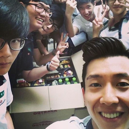 사진 속 브라이언과 방송에 함께 출연하는 학생들은 팬들로부터 받은 도시락에 무척 즐거워하는 모습이다.