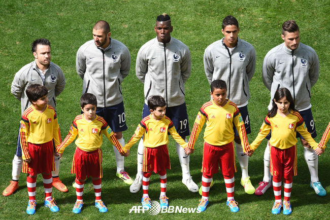 프랑스는 예상과 크게 다르지 않은 라인업을 들고 나왔다. 요리스 골키퍼가 골문을 지키며 포백은 오른쪽부터 드뷔시, 코시엘니, 바란, 에브라로 이어진다. 몸 상태가 좋지 않은 사코 대신 코시엘니가 선발 출장했다. 중앙에는 포그바, 카바예, 마투이디가 위치하며 발부에나, 지루, 벤제마가 최전방에서 득점을 노린다. 지루와 벤제마를 모두 투입시킨 대목에서 공격적으로 승부를 걸겠다는 디디에 데샹 감독의 생각을 어렴풋이 읽을 수 있다.