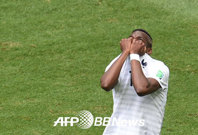 [OSEN=사진팀] 1일(한국시간) 브라질 브라질리아 에스타디오 나시오날 경기장에서 진행된 '2014 브라질 월드컵' 프랑스와 나이지리아의 16강전 경기, 전반 포그바가 골찬스를 놓친후 아쉬워하고 있다