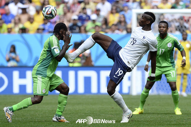 프랑스와 1일(이하 한국시간) 브라질 브라질리아의 에스타디오 나시오날에서 열린 2014 브라질 월드컵 나이지리아와 16강 경기서 후반 포그바가 선제골을 터트렸다.