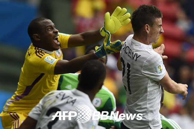 [OSEN=사진팀] 1일(한국시간) 브라질 브라질리아 에스타디오 나시오날 경기장에서 진행된 '2014 브라질 월드컵' 프랑스와 나이지리아의 16강전 경기, 후반 나이지리아 옌예마 골키퍼가 선방하고 있다.