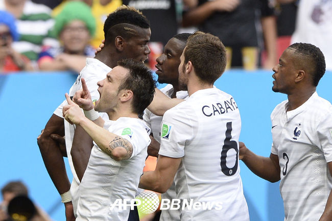 프랑스 1일(이하 한국시간) 브라질 브라질리아의 에스타디오 나시오날에서 열린 2014 브라질 월드컵 나이지리아와 16강 경기서 후반 터진 포그바의 결승골에 힘입어 2-0으로 승리했다.