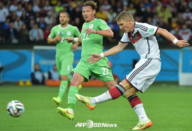 [OSEN=사진팀] 1일(한국시간) 오전(한국시간) 브라질 포르투 알레그리의 에스타디오 베이라-리오 경기장에서 열린 2014 브라질 월드컵 16강전 독일-알제리의 경기, 전반 모스테파가 슛을 시도하고 있다