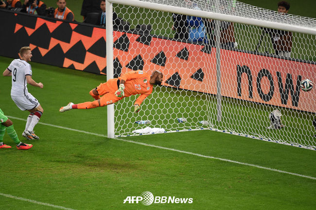 [OSEN=사진팀] 1일(한국시간) 오전(한국시간) 브라질 포르투 알레그리의 에스타디오 베이라-리오 경기장에서 열린 2014 브라질 월드컵 16강전 독일-알제리의 경기, 연장 전반 독일 쉬를레가 선취골을 넣고 있다.