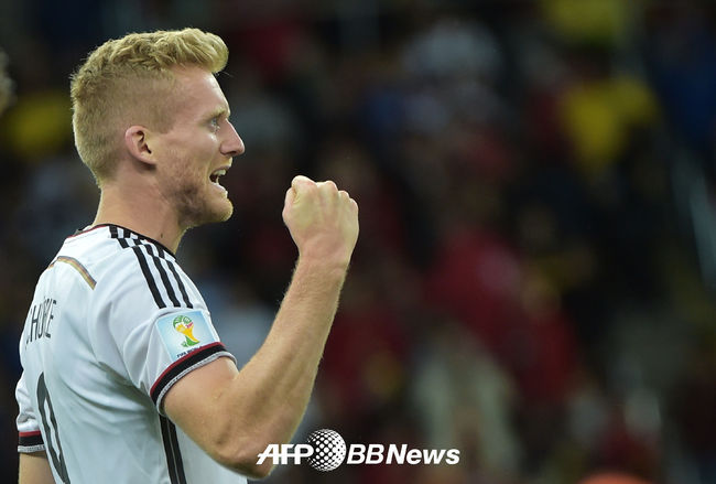 [OSEN=사진팀] 1일(한국시간) 오전(한국시간) 브라질 포르투 알레그리의 에스타디오 베이라-리오 경기장에서 열린 2014 브라질 월드컵 16강전 독일-알제리의 경기, 연장 전반 독일 쉬를레가 선취골을 넣고 환호하고 있다.