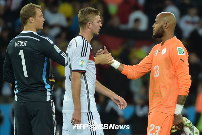 경기종료 후 노이어와 음보리 골키퍼가 악수를 나누고 있다 . /photo@osen.co.kr