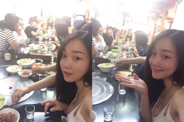공개된 사진에는 화장기 없는 얼굴로 전시회 워크숍 뒤풀이에 참석한 낸시랭의 모습이 담겨있다. 낸시랭은 청순한 얼굴과는 상반된 볼륨감 넘치는 몸매를 드러내 눈길을 끈다.