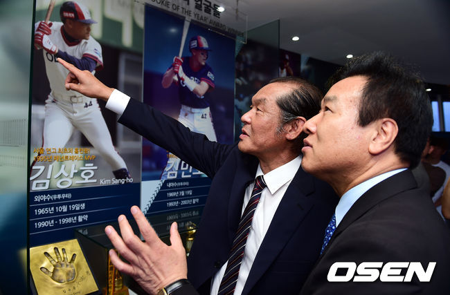 두산 레전드 박철순, 김유동이 참석해 전시관을 둘러보고 있다.