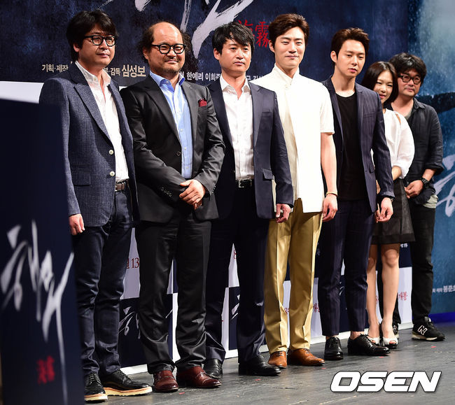 배우 김윤석, 김상호, 유승목, 이희준, 박유천, 한예리, 심성보 감독이 1일 오전 서울 신사동 CGV압구정에서 열린 영화 '해무'(감독 심성보) 제작보고회에 참석해 포토타임을 갖고 있다.