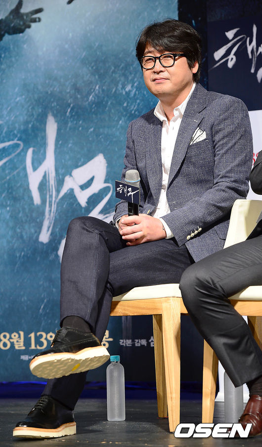1일 오전 서울 압구정 CGV에서 진행된 영화 '해무' 제작보고회에서 배우 김윤석이 질의응답 시간을 갖고 있다.