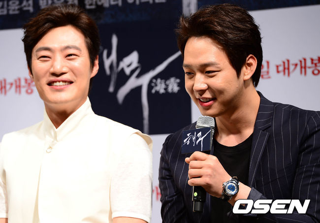 1일 오전 서울 압구정 CGV에서 진행된 영화 '해무' 제작보고회에서 배우 박유천이 이희준의 연기 가르침은 '질문을 통해서'라고 답변하고 있다.
