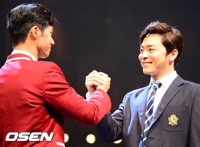 1일 오후 대학로 홍익대 아트센터 대극장에서 열린 뮤지컬 '블러드 브라더스'에서 배우 조정석,오종혁이 포즈를 취하고 있다.