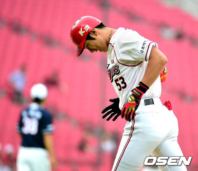 1회말 무사 2루에서 KIA 이대형이 좌익수 플라이로 물러나며 아쉬워하고 있다.