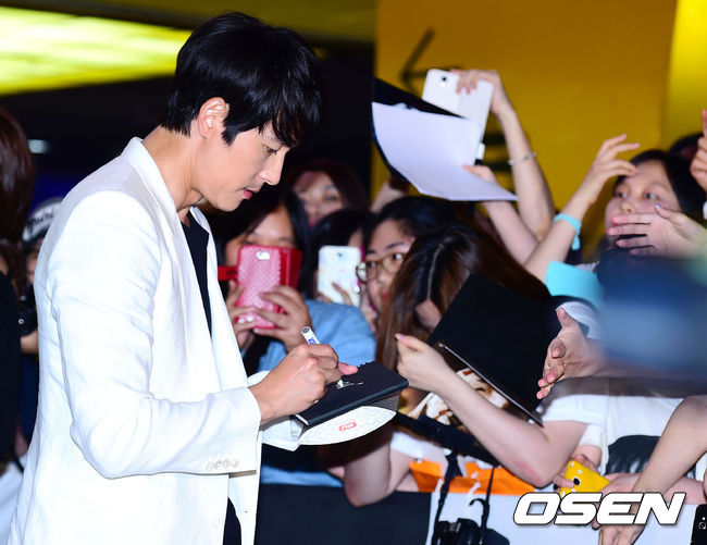 1일 오후 서울 코엑스 메가박스에서 진행된 '신의 한수'(감독 조범구) VIP시사회에서 정우성이 관객들에게 사인을 해주고 있다.