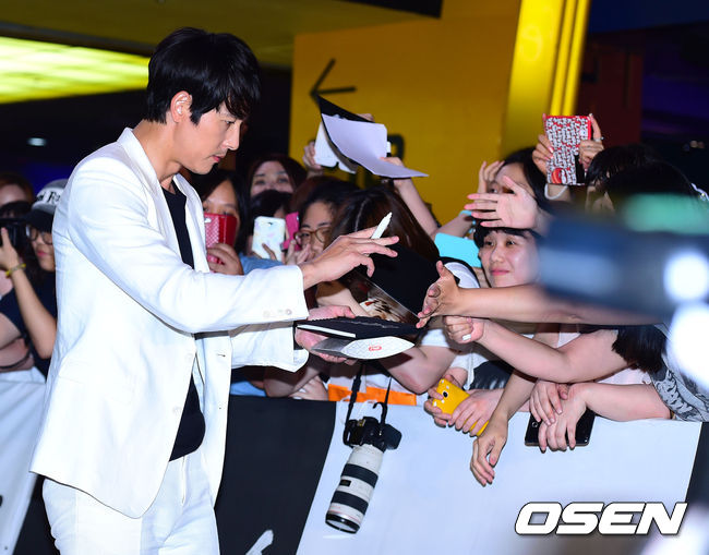 1일 오후 서울 코엑스 메가박스에서 진행된 '신의 한수'(감독 조범구) VIP시사회에서 정우성이 관객들과 악수를 나누고 있다.