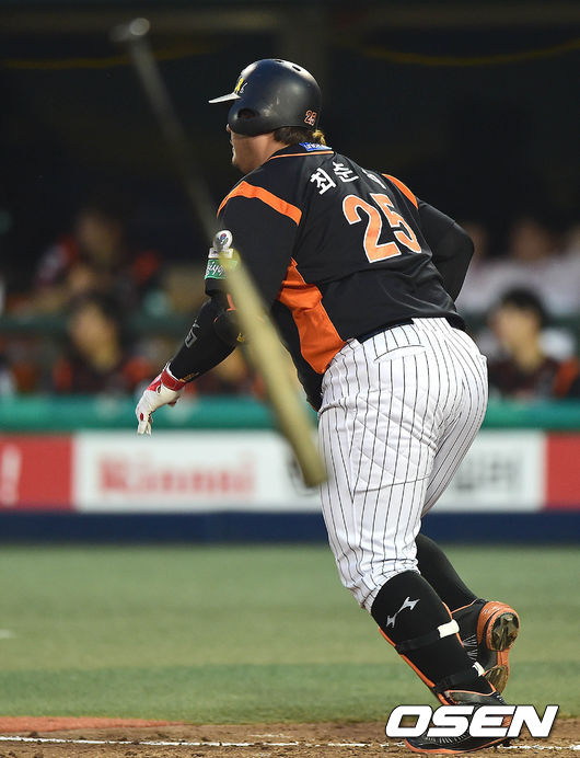 5회초 롯데 공격 1사 주자없는 상황 최준석이 추격의 우월 솔로포를 날리고 그라운드를 돌고 있다.