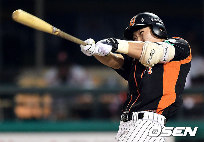6회초 롯데 공격 2사 주자없는 상황 정훈이 추격의 좌월 솔로포를 날리고 있다.