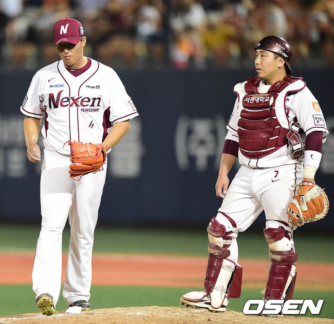 6회초 롯데 공격 2사 1, 2루 상황 넥센 투수 김영민이 마운드를 내려가고 있다.