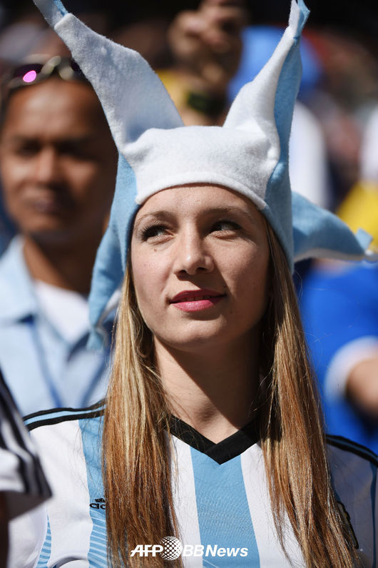 [OSEN=사진팀] 2일 오전(한국시간) 브라질 상파울루 아레나 코린치안스에서 2014 브라질 월드컵 16강전 아르헨티나-스위스의 경기가 열릴 예정인 가운데 경기에 앞서 아르헨티나 축구팬이 열띤 응원을 펼치고 있다.