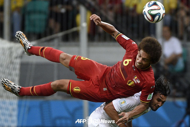 [OSEN=사진팀] 2일 오전(한국시간) 브라질 사우바도르 아레나 폰테 노바에서 열린 2014 브라질 월드컵 16강전 벨기에-미국 경기, 벨기에의 악셀 비첼이 볼을 향해 몸을 날리고 있다.